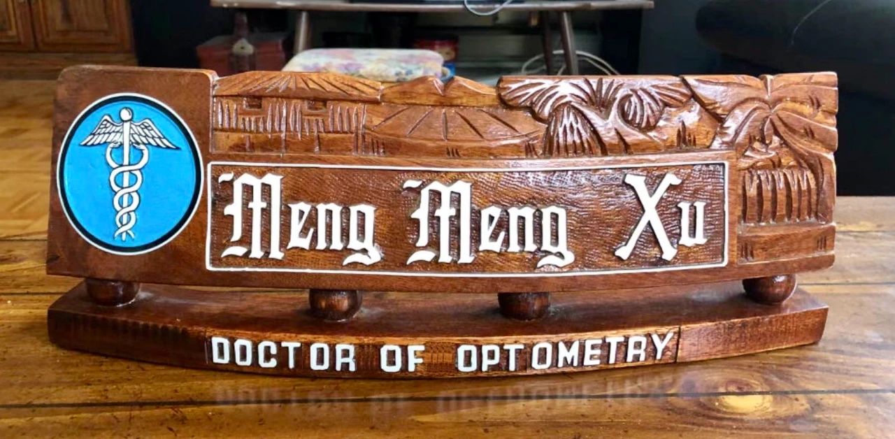 我家客厅酒柜上放着一件刻着女儿名字的木雕艺术品,是她在美国实习时某位病人送的,眼见作者费了不少的心血。可惜送来时女儿已回加拿大,还是后来的一个实习生无意中发现了这个雕塑又碰巧知道Xu Meng Meng,实习结束后好心带回学校。女儿十分感动,想对那位病人表达感谢。但多方打探,没人说得清是哪一位病人将它放到了前台。