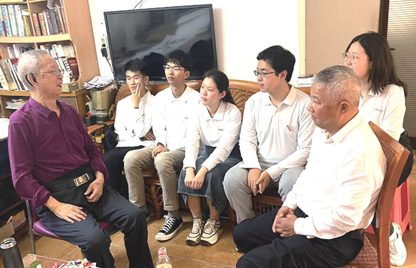 2024年1月,102岁的杨辛先生在海南寓所与北京大学师生交流。