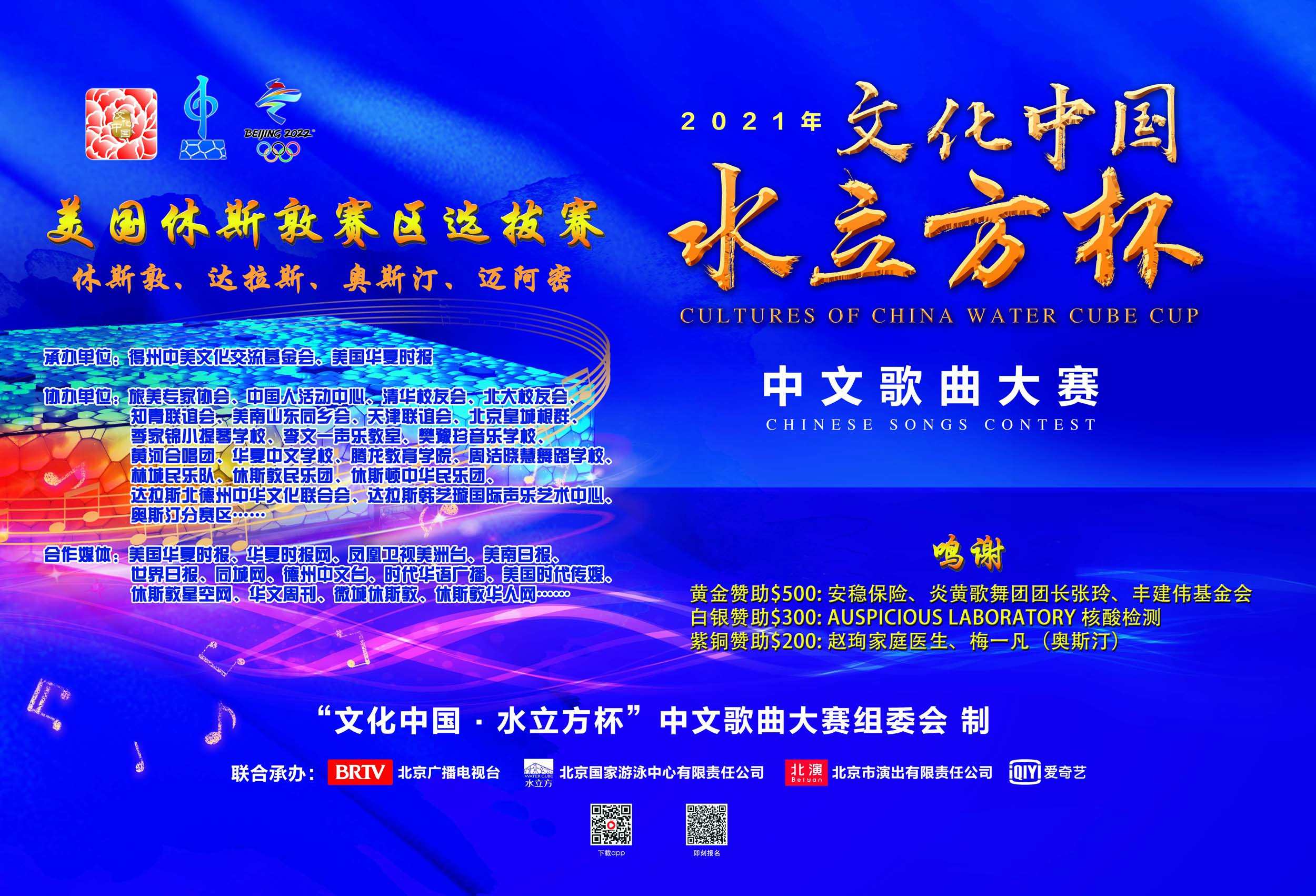 休斯敦赛区自2017年至2019年成功地举办了三届“水立方杯”中文歌曲大赛。“水立方杯”中文歌曲大赛,已成为海外华人的文化盛事,水立方的舞台,已成为展现华人风采的独特窗口。