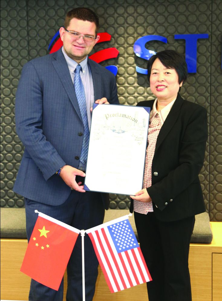 【本报记者慕石报道】休斯敦市政府近日宣布,为了表彰卫星化学集团副董事长杨玉英女士为公益事业所做的贡献,将12月7日命名为“杨玉英日”。休斯敦市长西尔维斯特·特纳派代表杰夫·赛普塔克专程到卫星化学美国公司(简称“卫星美国”)为杨玉英颁发“杨玉英日”嘉奖状。