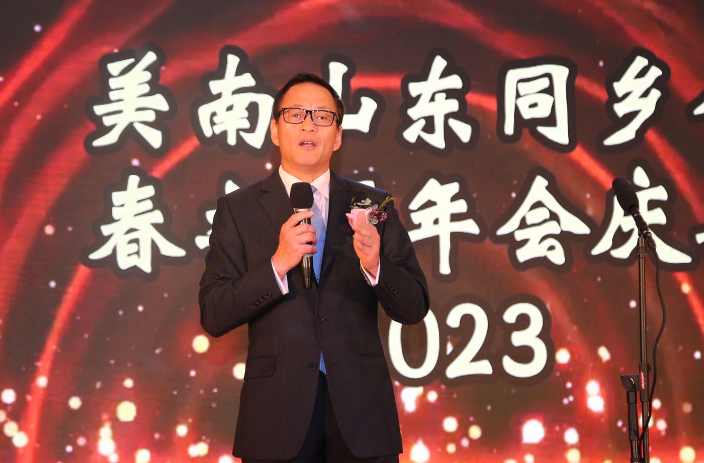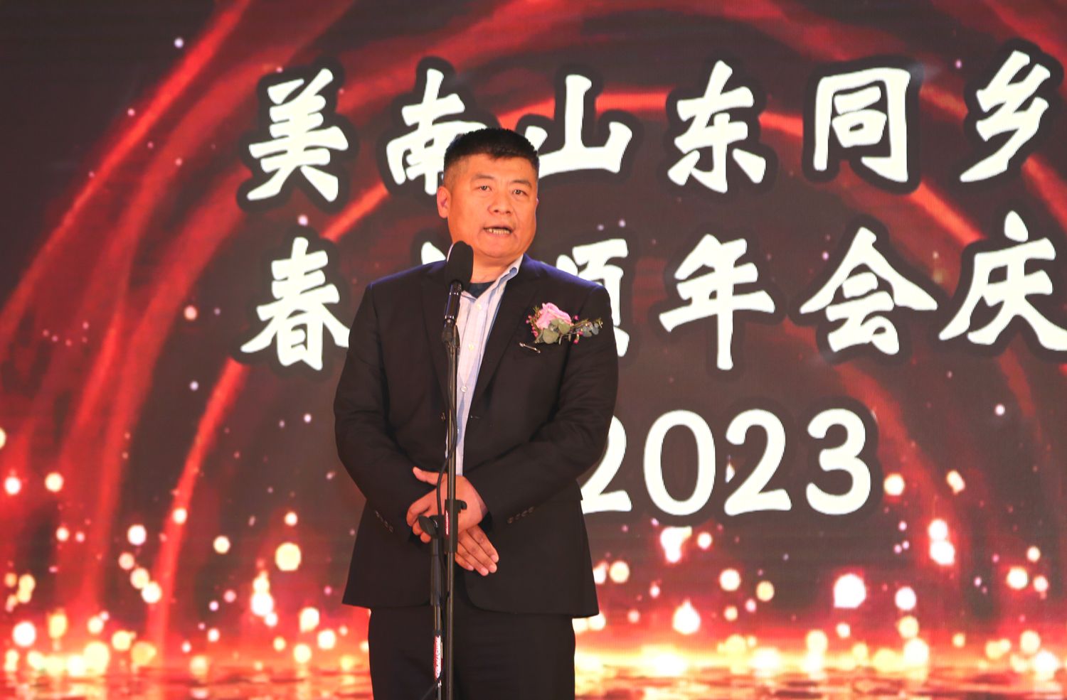 【本报讯】美南山东同乡会2023“春之颂”年会庆典3月19日在Lam Bo Ballroom隆重举行。经过理事会成员们群策群力和两个多月的精心筹备,庆典取得圆满成功。山东老乡与嘉宾朋友近600人欢聚一堂,鲁味美食、歌舞表演、拍卖抽奖,年会现场热闹非凡,乡味十足。为了增进山东老乡、赞助商和侨界朋友的相互了解,宴会前举行了联谊酒会。杜英杰副会长为大家义务专业拍照,大屏幕滚动播放了同乡会活动影像回顾。