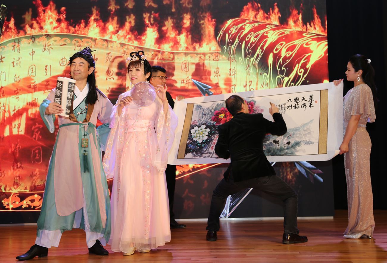 年会安排了精彩纷呈的文艺表演,包括林思晨理事领衔舞蹈队的山东风味扭秧歌,一线华人医生的舞蹈“YOU RAISE ME UP”,江宜桥画家现场收笔的“蓬莱天仙,鹤福九州”牡丹画作,美齐荣誉会长等表演的齐风鲁韵古诗词诵读,江岳副会长创作的相声“侃说水浒”,四人组唱山东省省歌“相亲相爱”,及中华武术、魔术、歌舞、器乐表演等。