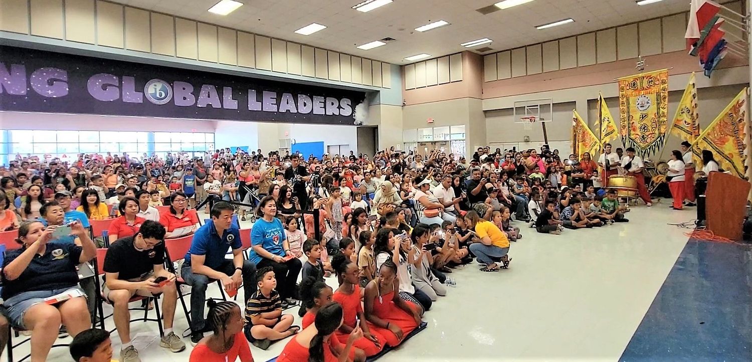 今年是爱心组织为低收入家庭学童赠送文具书包活动的第30个年头。当天夏日炎炎,学校外边大排长龙,小学生和家长排队进入大礼堂。有1500多人参加了爱心组织举办的这场活动,文艺节目精彩纷呈,有中国功夫、舞狮、扯铃、舞蹈等,展示了各族裔文化的交融互鉴,博得观众的阵阵掌声和喝彩声。