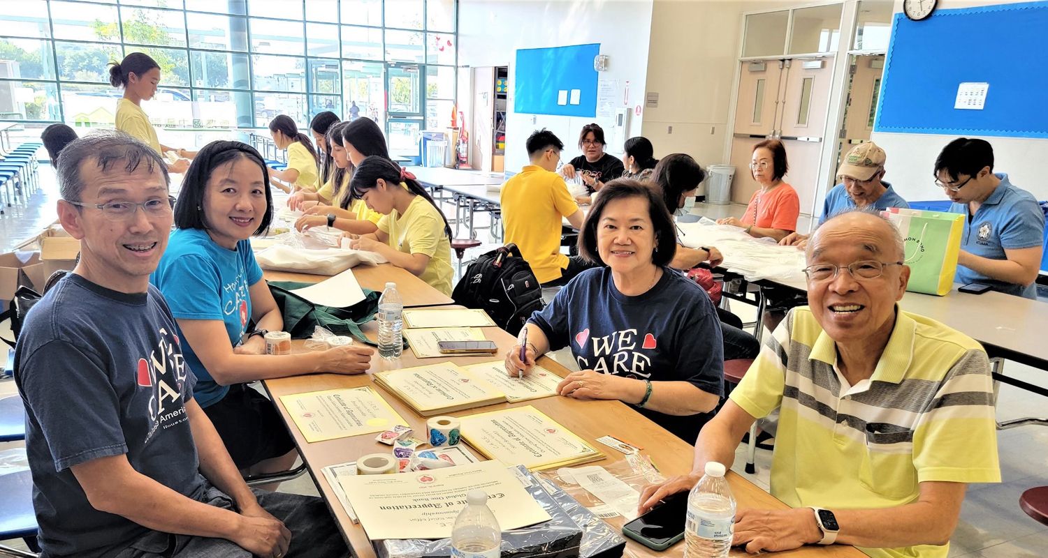 爱心组织洪良冰会长说,今年共募集到$34000,有145位义工帮忙包装文具用品书包,共为小朋友们捐出了925个全年度的学用品书包。义工们按不同年级把文具书包送到每一位小朋友手上。