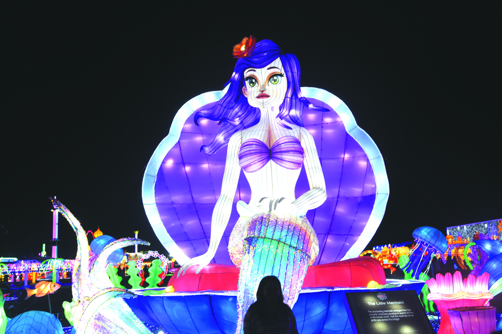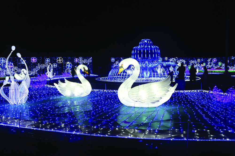 今年的冬季梦幻彩灯节以全新的冰雪主题精彩呈现,各种新颖的大型灯组美轮美奂,让人目不暇接。冰雪城堡、冰雪圣诞树、冰山、冰雪马车,还有冰雪姐妹将在这里迎接期盼体验冰天雪地的游客到来。走出“冰雪世界”,游客可欣赏丰富多彩的海洋生物,在“美人鱼”光雕前留影,父母们可以带着孩子们到“太空迷宫”去进行奇妙的探险,与大小“机器人”擦肩而过,到“重力感应灯”上去欢快跳跃,去“侏罗纪世界”与成群的恐龙亲密接触,去五彩斑斓的美丽花园尽览群芳。