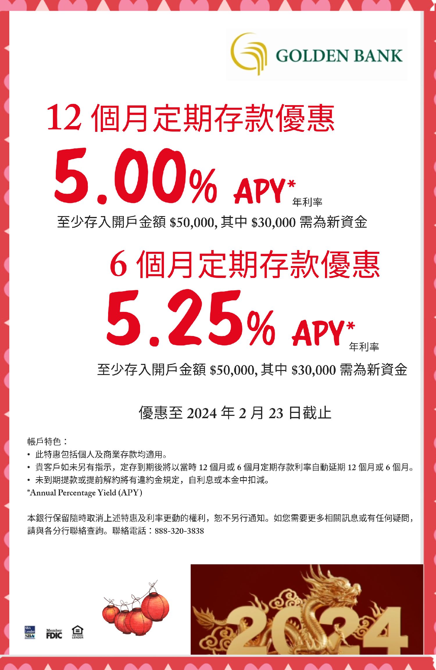 金城银行迎龙年特别推出定期存款优惠