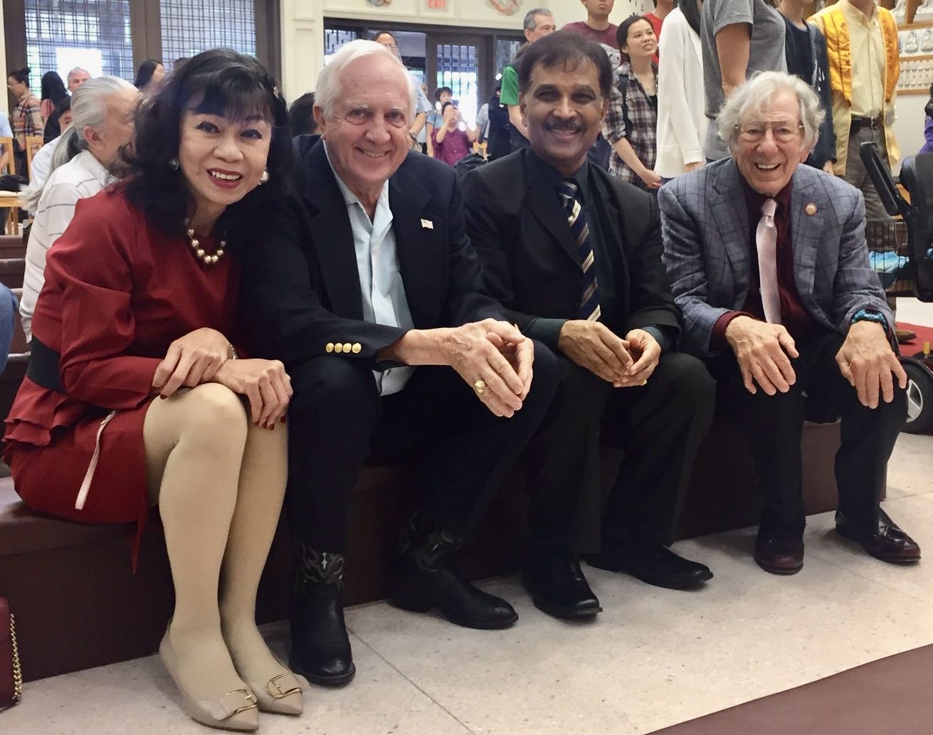 谭秋晴和斯坦福市其他官员在中美寺参加活动