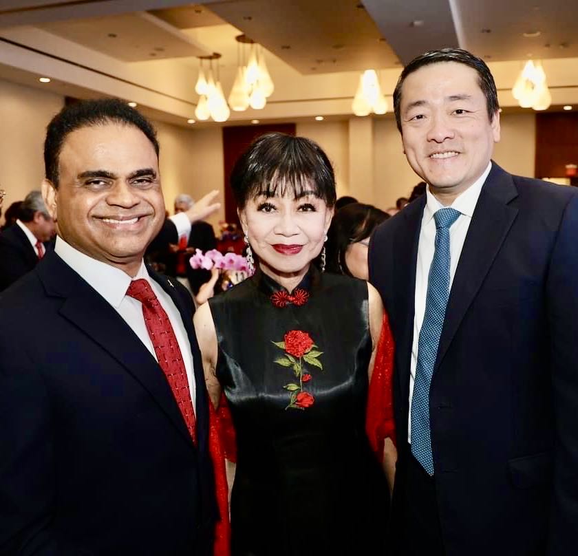 谭秋晴和德州州议员吴元之、福遍县县长KP George