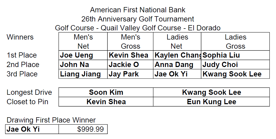 本次高尔夫球赛获奖名单如下: