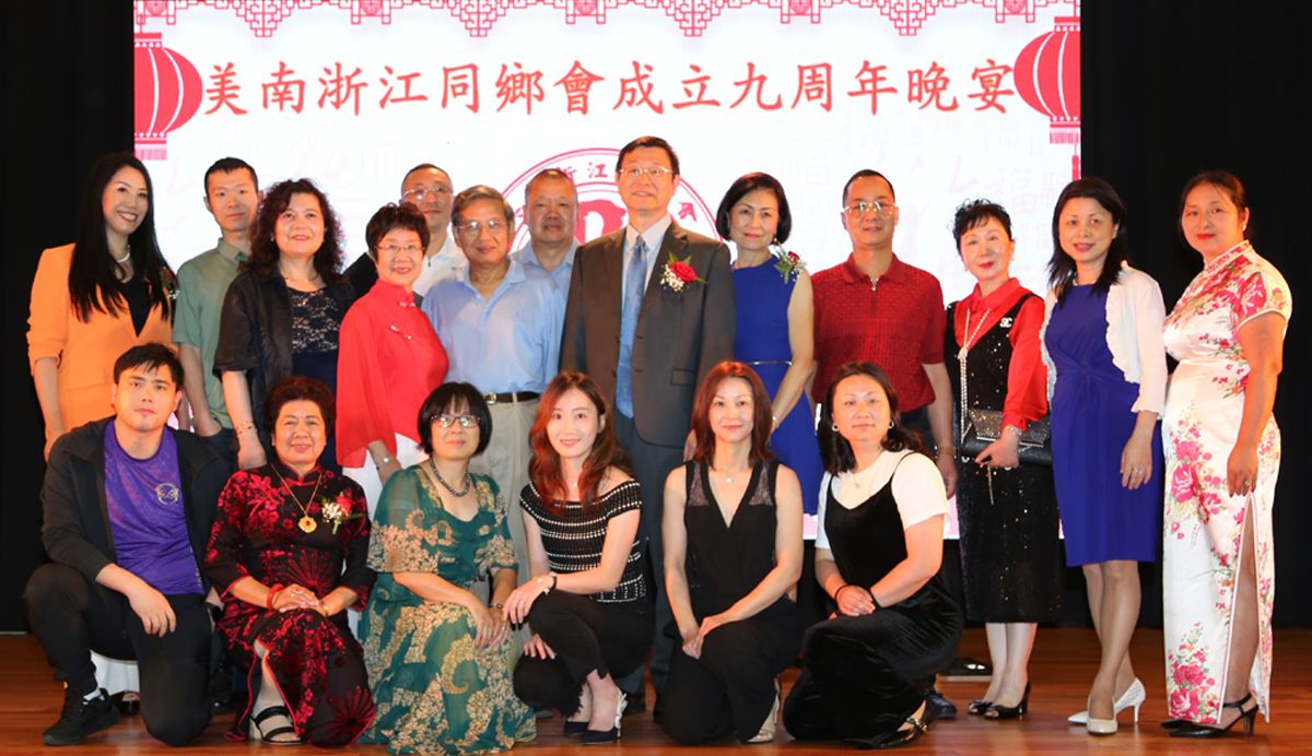 【本报记者慕石报道】美南浙江同乡会5月11日在Lambo宴会厅举行成立九周年晚宴。浙江乡亲、各界代表及社团领袖近40