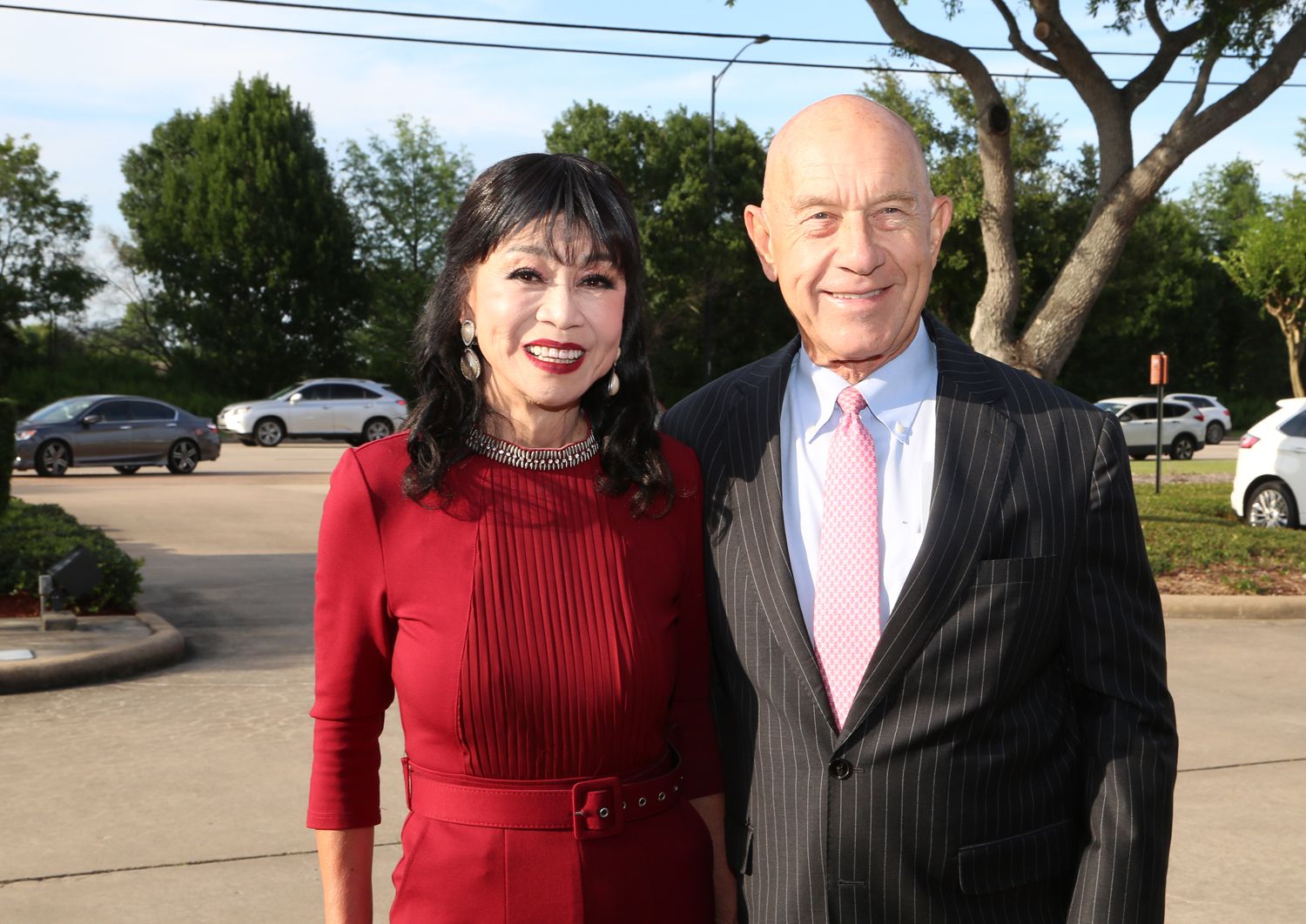 谭秋晴与休斯敦市长惠特迈尔在斯塔福市政厅门前合影