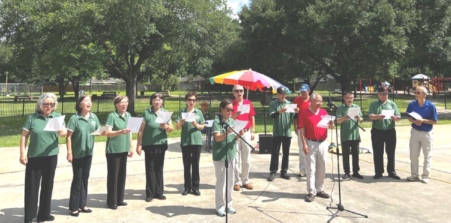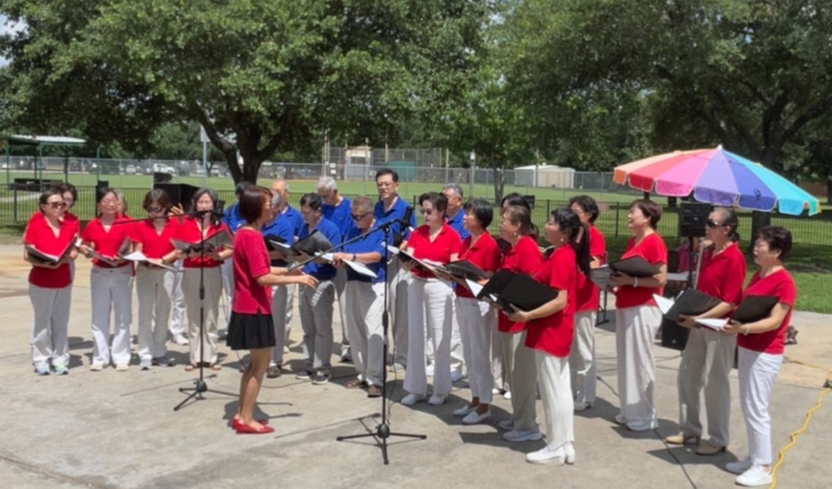 合唱《休斯敦知青之歌》(2019年创作,谢家驹词,燕君陶曲),新老会长郑国祥、梁薇领唱,全体原唱队员伴唱