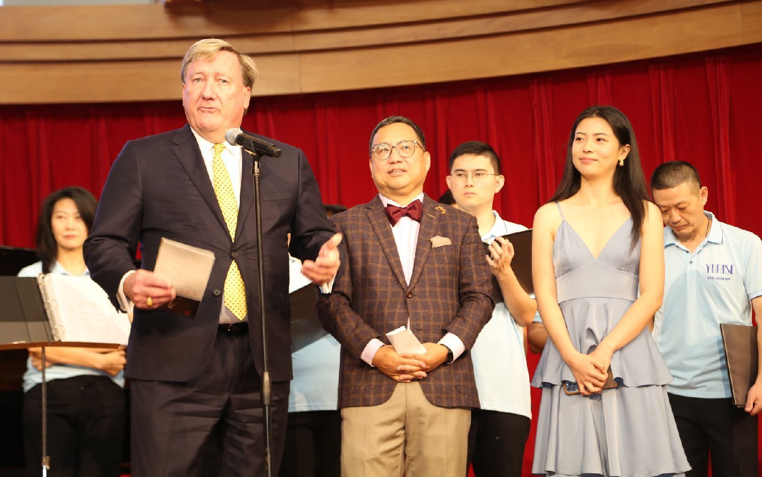 洛克菲勒全球家族办公室(音乐会白金赞助)的 Glenn Mealey 致词,中为美福基金会董事会主席喻斌