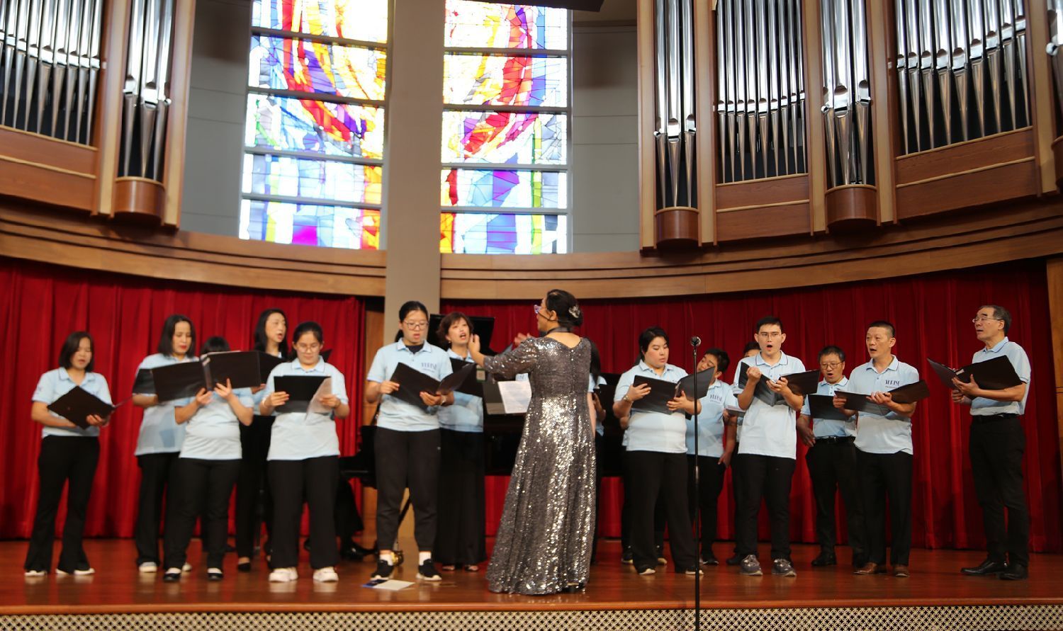 由特障人士和他们的父母组成的 Upward 合唱团在演唱