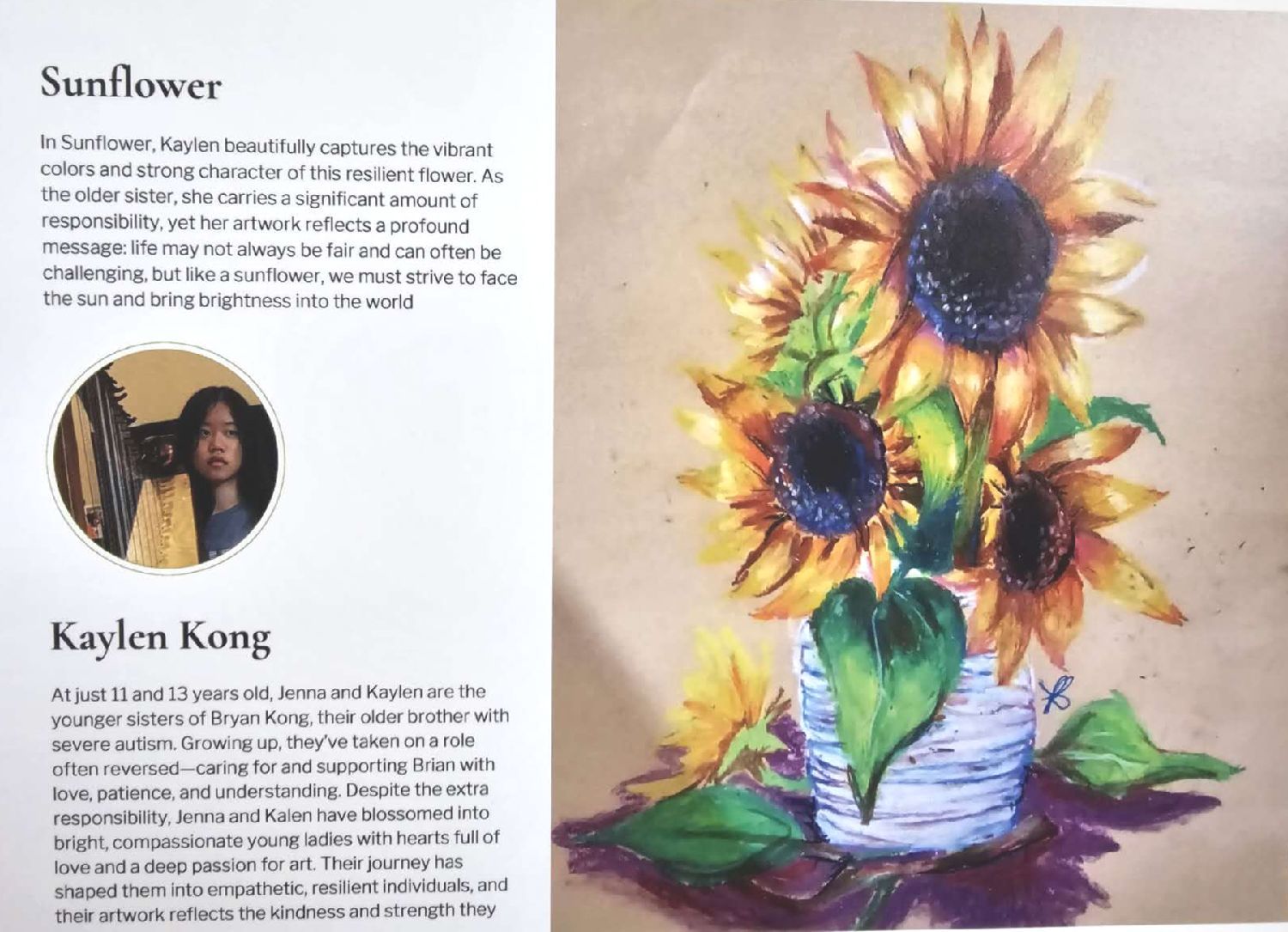 特殊需求家庭成员 Kaylen Kong 的画 《Sunflower》