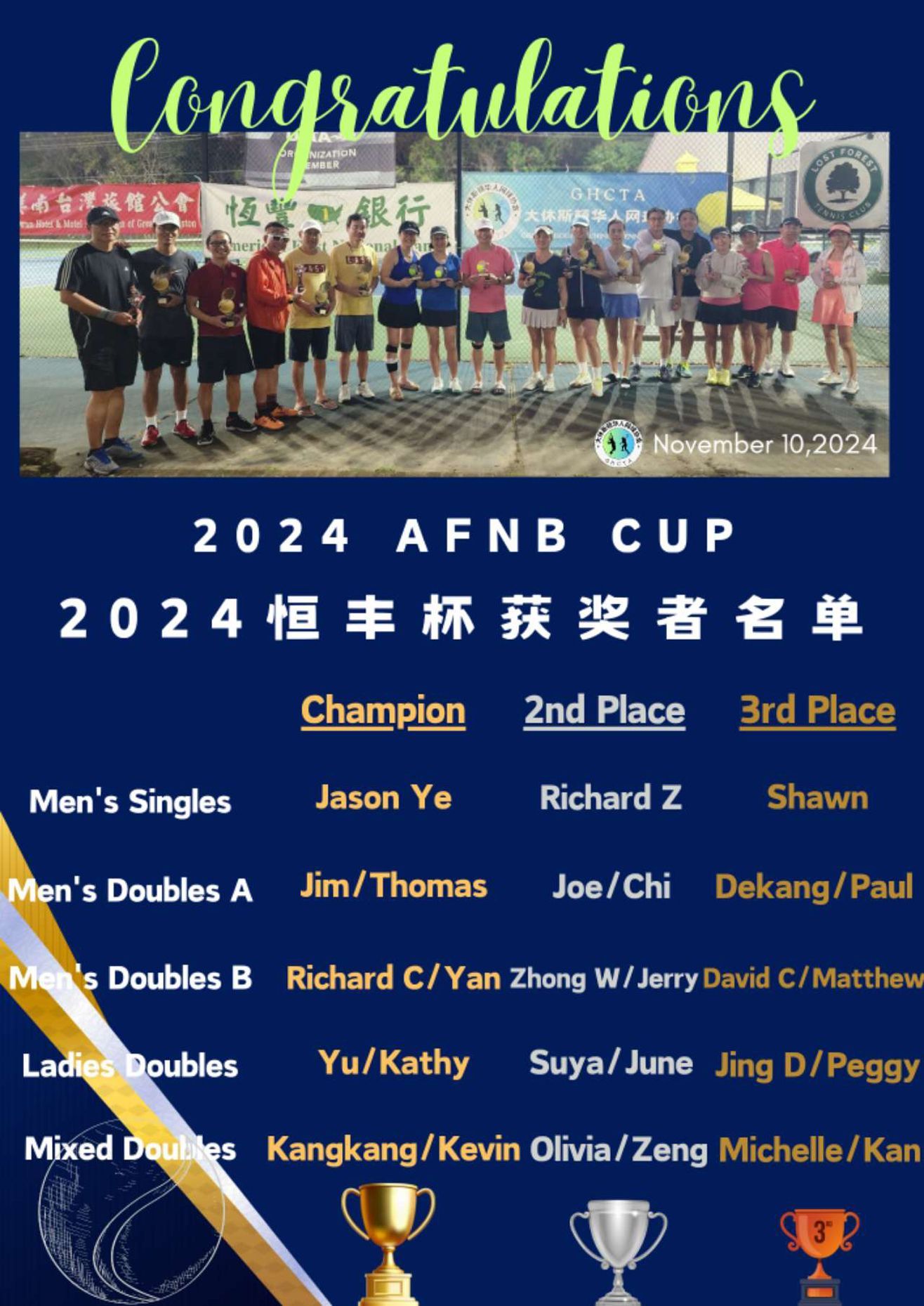 在闭幕式上,大休斯敦华人网球协会Sean Yu代表组委诚挚感谢恒丰银行,多年来服务华人社区,不遗余力支持华人网球运动。作为冠名赞助商的恒丰银行公关部经理Jennifer Zhou感谢华人网球协会负责人及赛事工作人员的能力和付出,祝贺比赛成功。恆丰银行作为社区银行,创立26年来始终坚持服务至上的原则,在提供优质专业的金融服务的同时,深耕社区,為社区民众服务。恆丰不遗餘力地长期支持有益於社区建设的活动,以尽社区银行之社会责任。