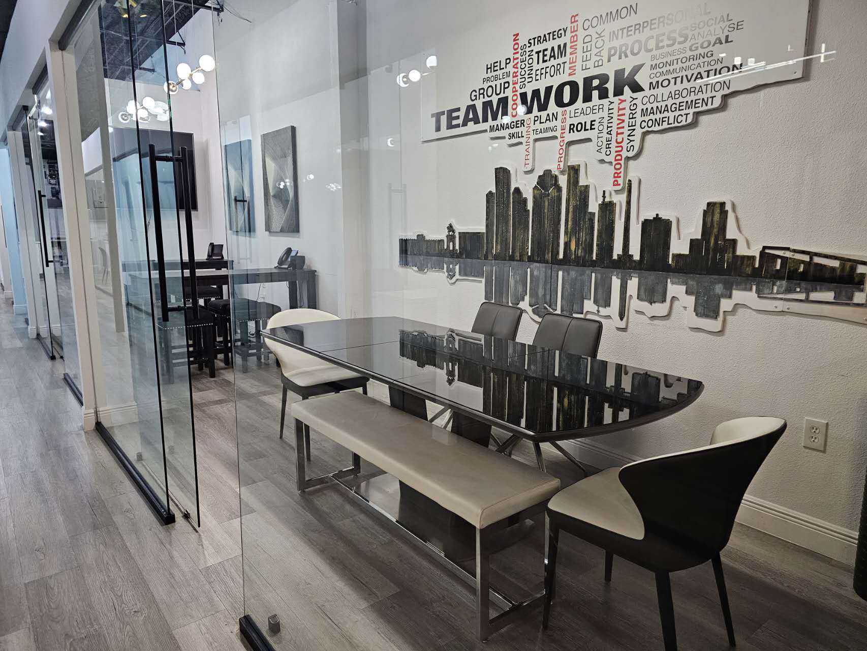 踏进SKW Realty公司的办公室,右侧来宾接待区墙上刻着的“
