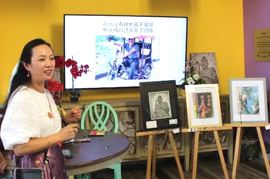 中国麻风村公益行发起人 Abby 介绍艺术画作义卖募捐过程
