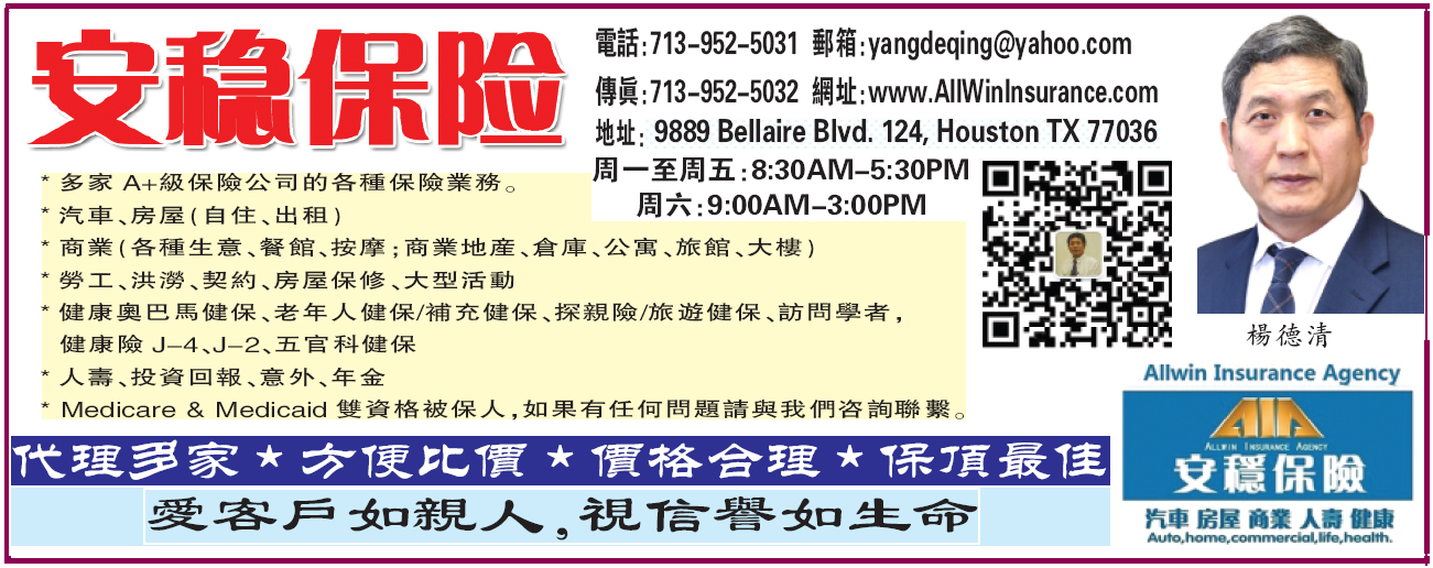 欢迎咨询安稳保险代理公司:电话 713-952-5031;电子邮箱 sale@allwininsurance.com;地址 9889 Bellaire Blvd.124, Houston;网站 www.allwininsurance.com/www.allwinins.com