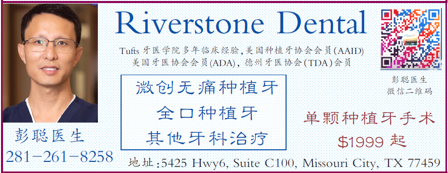 【本报记者慕石报道】瑞福牙科(Riverstone Dental)为糖城、密城社区提供优质服务25年.彭聪医生成为主理人后,对诊所进行了全面的升级和创新,