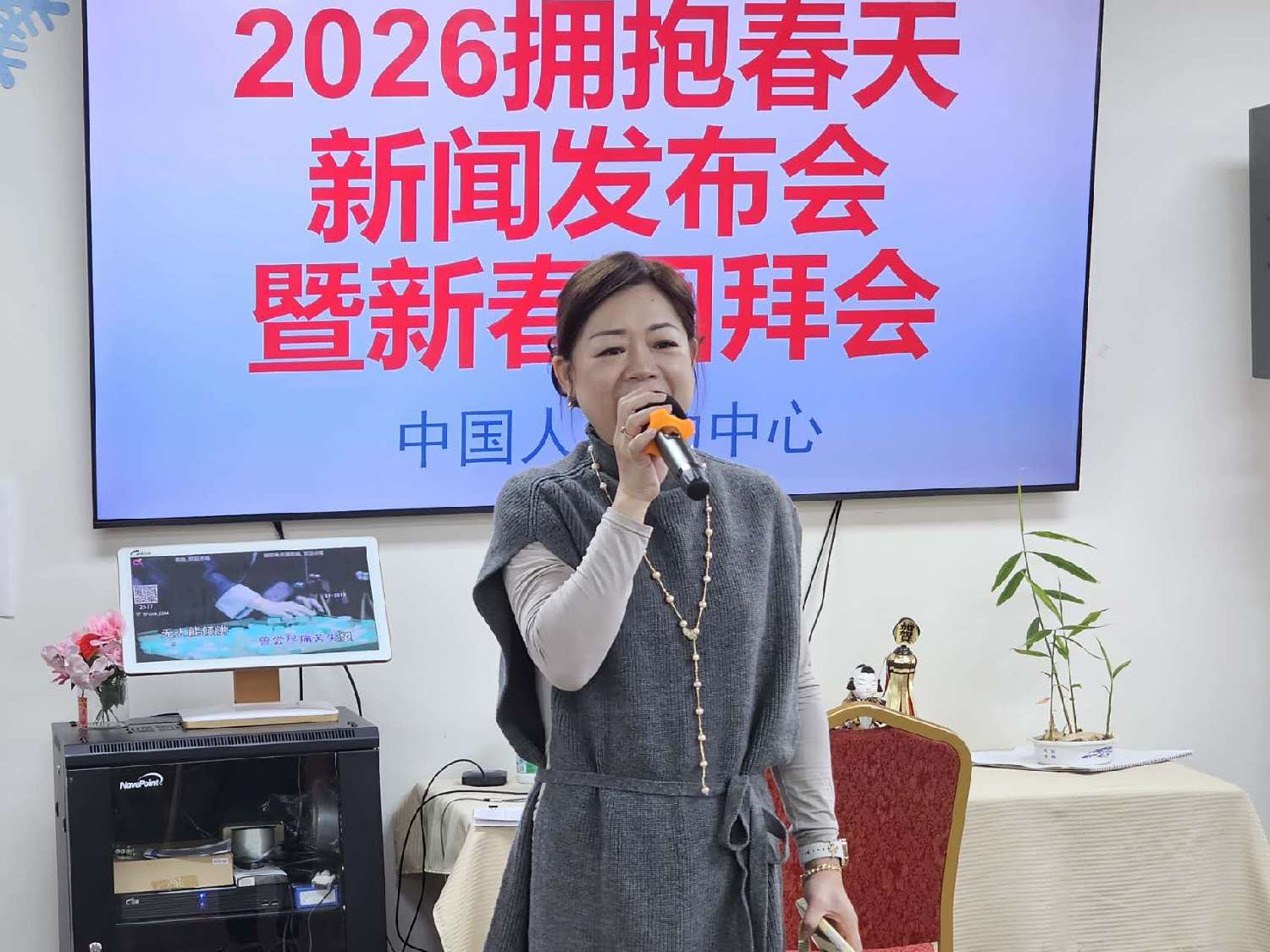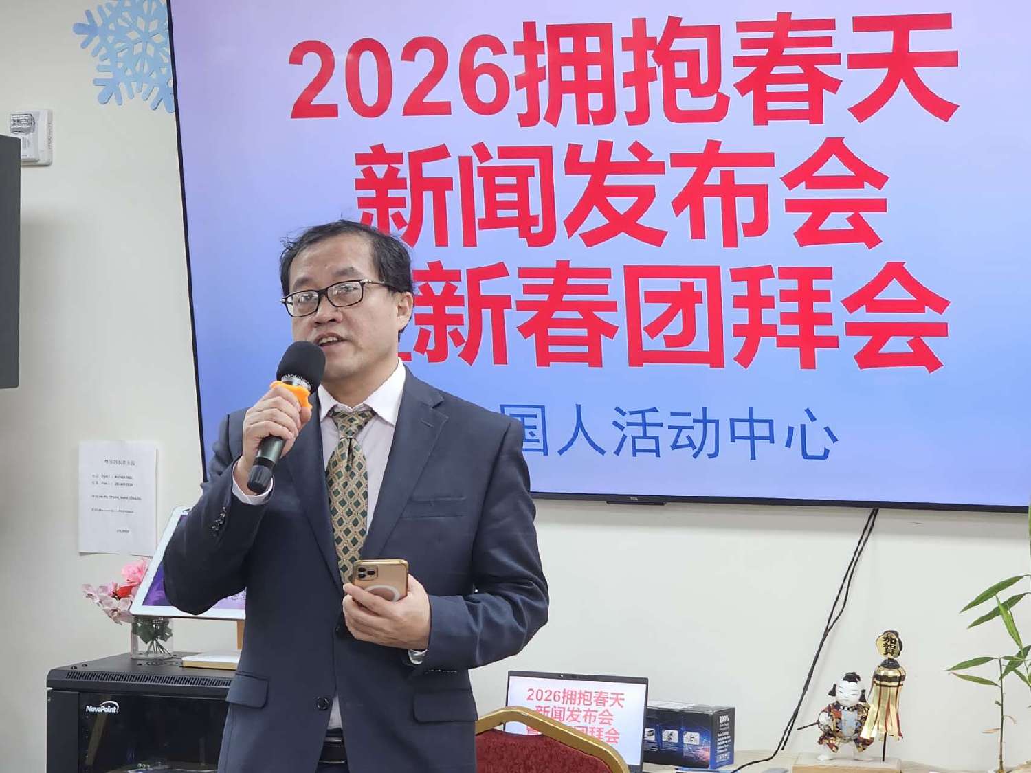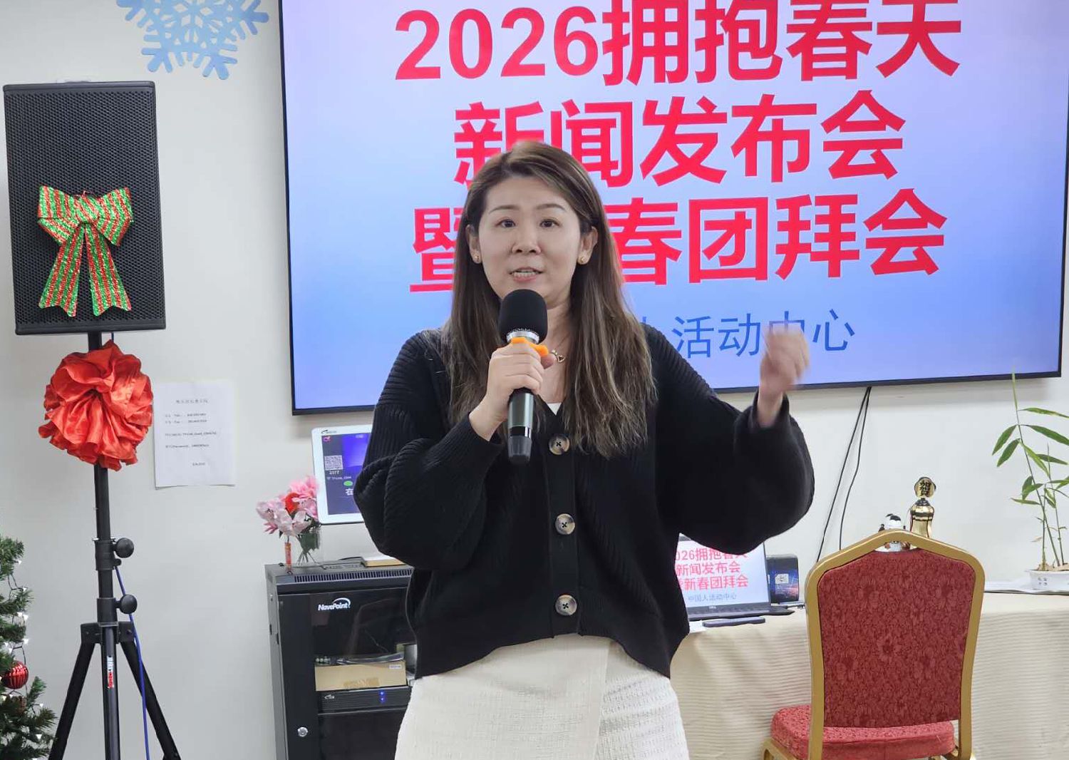 【本报记者慕石报道】中国人活动中心1月11日在粤乐居举行2026《拥抱春天》春节联欢晚会新闻发布会。大休斯敦地区侨团代表、艺术界人士及晚会组委会成员等70余人齐聚一堂,共同见证这一年度新春文化盛事的正式启动。