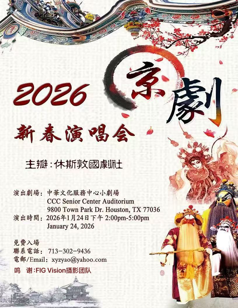 演出剧场:休斯敦中华文化服务中心小礼堂(9800Town Park Dr, Houston)