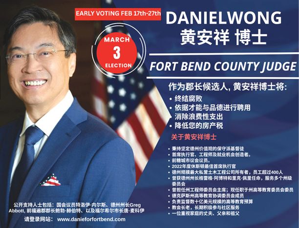 在本次初选中,多位华裔候选人参加竞选。其中以福遍郡长候选人黄安祥(Daniel Wong)和福遍郡总书记官候选人张晶晶(J.J.Clemence)备受瞩目,彰显了华裔群体对参政的热情与力量。这两位都是以共和党候选人身份参加竞选。