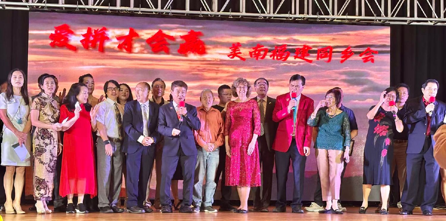 随后,全体理事会成员共同唱响闽南名曲《爱拼才会赢》,