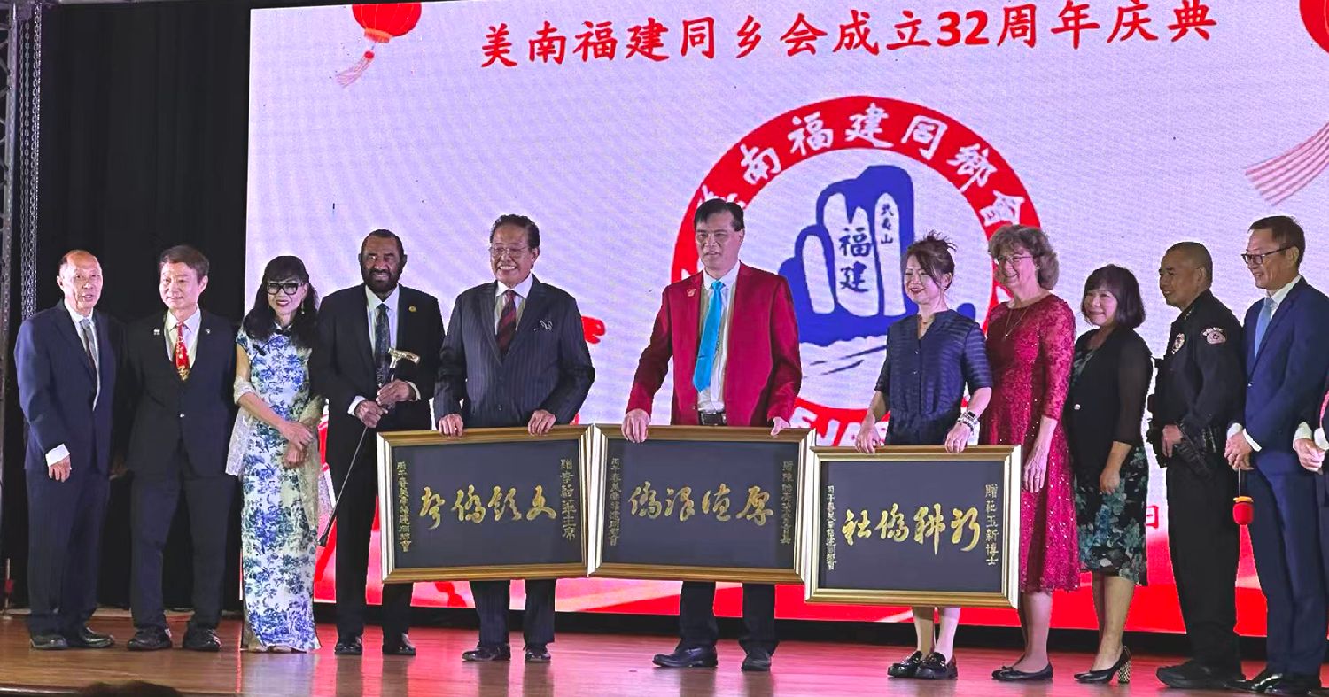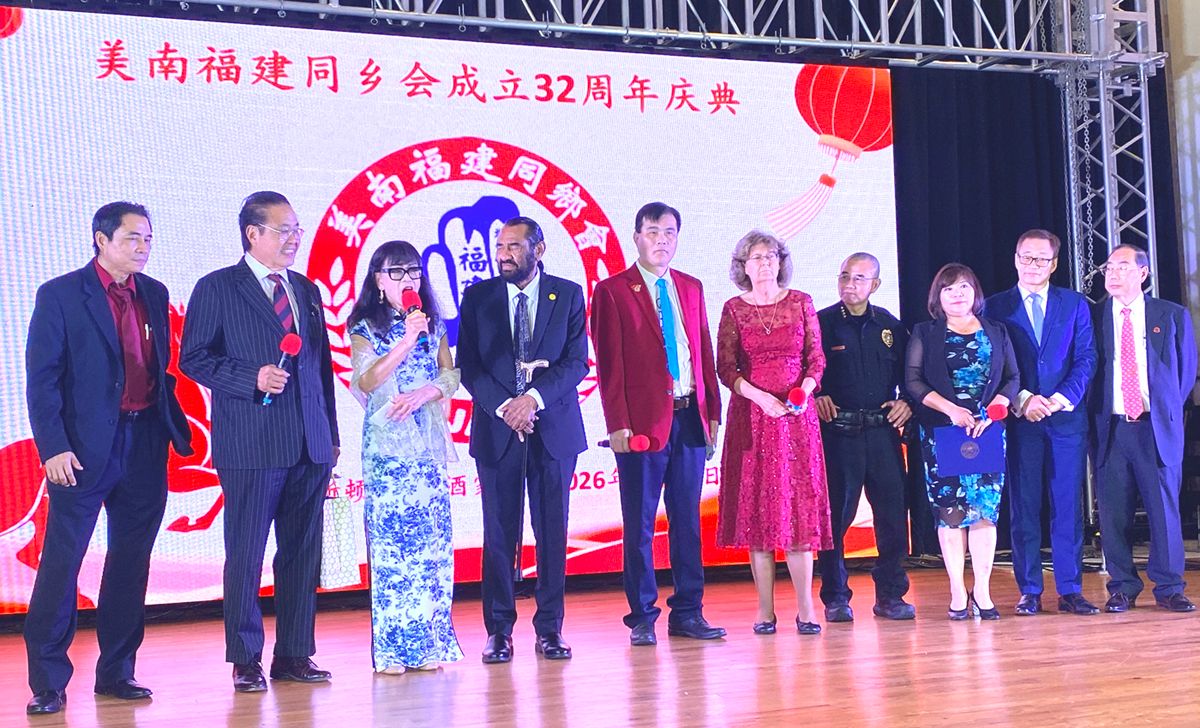 【本报记者张磊报道】3月15日,美南福建同乡会在休斯敦Lam Bo 宴会厅隆重举行成立32周年和美国陈氏宗亲会10周年庆典晚会。