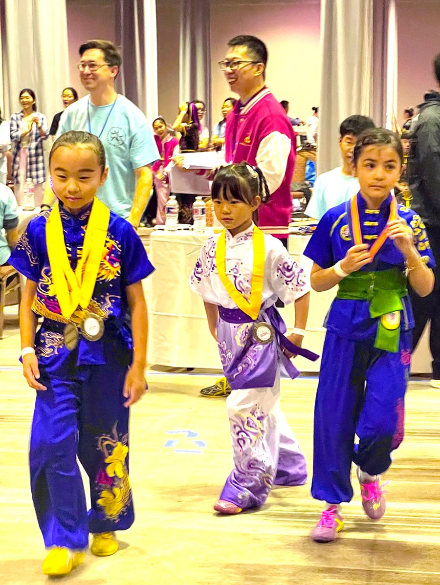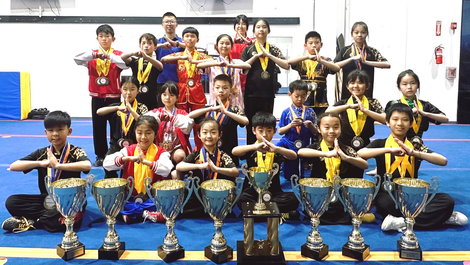 9名新文武功夫学员参加7个组别的总冠军争夺,并最终获得全部7个总冠军,表现尤为亮眼:Eason Cheung(10岁)获得10–12岁组总冠军;Annie Wang(9岁)获得7–9岁年龄组长拳、南拳双料总冠军;Anson Zhang(8岁)获得7–9岁南拳类总冠军;Henry Xue(11岁)获得10–12岁南拳总冠军;Irene Zhang(10岁)获得10–12岁长拳类总冠军;Noah Barnnet(8岁)获得7–9岁长拳类总冠军。其他参赛学员同样在不同年龄组和比赛项目中均有金牌和奖牌入账,各有斩获,因篇幅所限不一一列举。