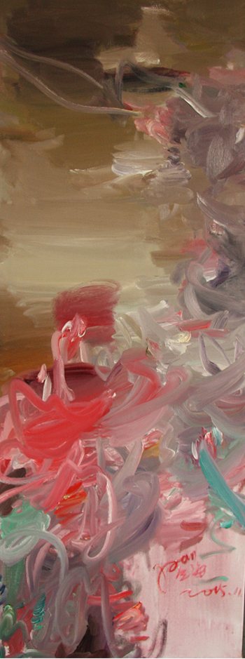 《睡莲》,刷新了潘全海个人作品拍卖的新纪录。它在北京保利夜场上,可谓一枝独秀;它在复杂的经济环境与艺术市场中,实属一股中坚力量。 潘全海,出生于广西,大学就读于中央民族大学,上个世纪90年代中期移居美国,以画睡莲著称,主要有《睡莲》、《心灵之窗》、《花语》、《蒙娜丽莎》等系列作品。以西画的油彩表达东方水墨画的意境,磅礴大气、灵动飘逸。从中国到美国,从写实到抽象表现,举办了《2009年 台北国父纪念馆个展》《2009年 北京798个展》《2008年 美国休士顿莱斯大学个展》等多场个展,以及参加了《2008年 美国洛杉矶韩国文化中心第16届全国美术比赛获奖者联展》《2008年 美国德州Stephen F. Austin State University全国美术比赛获奖者联展》等多场联展。 作品《睡莲》系列,有一种神秘的东方气息弥漫四周,流淌自如的书法式运笔,使颜料游弋于画布之上,传统绘画中具有象征意义的“出淤泥而不染”的莲,在潘全海的笔下却充满着妖娆与鬼魅的生命感,原本静谧的荷塘变得深不可测,处处涌动着玄机。在潘全海的笔下,睡莲是一笔笔的涂写出来,他通过传统花鸟写意画的方式,信笔写出睡莲的形态,精准捕获到花朵在盛开与纷落之间,醒来与美梦之间的那种摇曳姿态。他创造了一套表现世界的方法,使万物皆备于我,也使万物得到一种全新的呈现和诠释,他便是那万物缝隙中的一束光。 笔与色无论如何挥洒,视觉冲击的关键点与画面张力的限度,始终控制在整体情感的言说之中,而这一情感又始终承载着中国传统文化诗性特质及当代的荒诞意味。尤其在红与绿一对补色关系中,色相及色度无论如何转换变异,却始终准确地把握着色彩的理性规则与感性经验,而这一切是在随意类似涂鸦式的绘画过程中形成的,并非刻意而为。 《睡莲》系列既是一种来自于自然的生命之境,也是如石涛所说“纵使笔不笔、墨不墨、画不画,自有我在”精神之境。正是这种双重境界,使他的作品具有了一种令人心动的感染力,也为观者开辟了一条通过艺术表现理解艺术主体的通道。(裴成)
