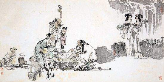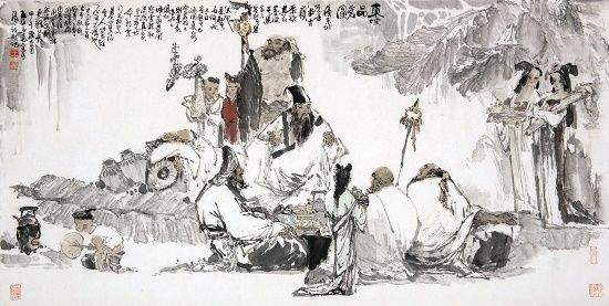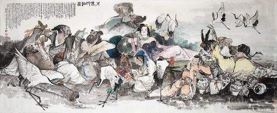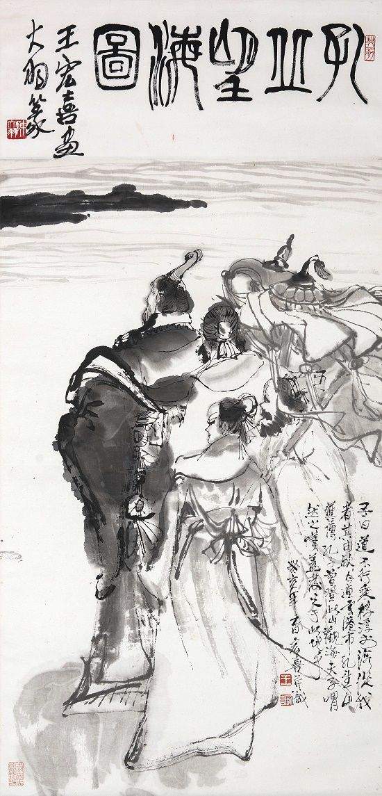 王宏喜,字宋颜,中国美术家协会会员、著名中国人物画家,祖籍江苏连云港,1937年出生,早年发蒙于私塾。其少时即天资聪颖、才敏过人,国学根底深厚。1964年毕业于南京艺术学院,师从亚明、陈大羽、沈涛等名画家,并为国画大师傅抱石所赏识,曾有幸受邀为其画作《芙蓉国里尽朝晖》补色。历任上海人民美术出版社创作员、连云港市美术家协会主席、上海美术馆研究馆员,擅长中国人物画,旁及花鸟、山水画及诗词创作,为画坛所嘱目,在海内外有广泛影响。王宏喜出生在海边,对大海怀有深厚的感情。他血脉里流淌着传统的血液,奔涌着时代的豪情,善于站在历史与现实的高度思考,通过对社会底层普通百姓的劳动场景刻画,挖掘时代精神。20世纪70年代,他通过表现黄海之滨渔民和沂蒙山区农民群众,创作出大量优秀作品,如《愚公移山》《黄海风》《向海洋》《脊梁》《赶海》等,其中《脊梁》被《红旗》杂志登载推介;与此同时,他还创作连环画《白毛女》《春风杨柳万千条》及巨幅壁画《赤壁大战》等作品,奠定了其在全国美术界的地位,尤其是《白毛女》印成儿童读物后发行量超过百万册。80年代后,他又成功创作出《三国演义全图(共150幅)》《金陵十二钗》《竹林七贤》《十八罗汉册页》等历史人物画,还为秦淮区创作《秦淮八艳》,为南京夫子庙孔子大成殿绘制8.6米高的孔子像。他创作的《八仙过海》《赤壁怀古》等作品被日本、韩国、新加坡等国外著名美术馆收藏。