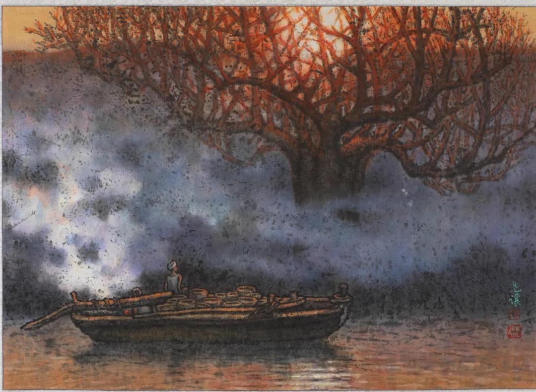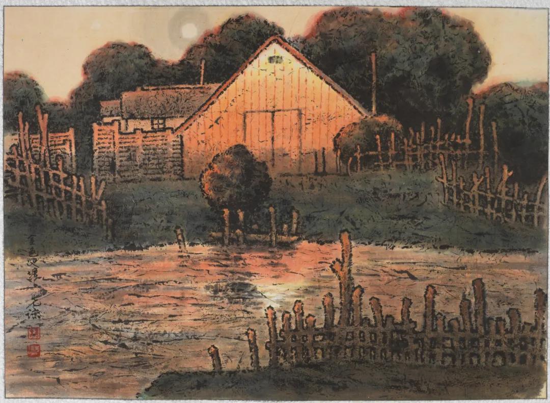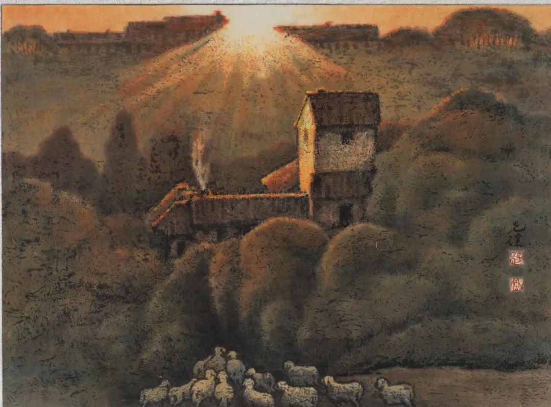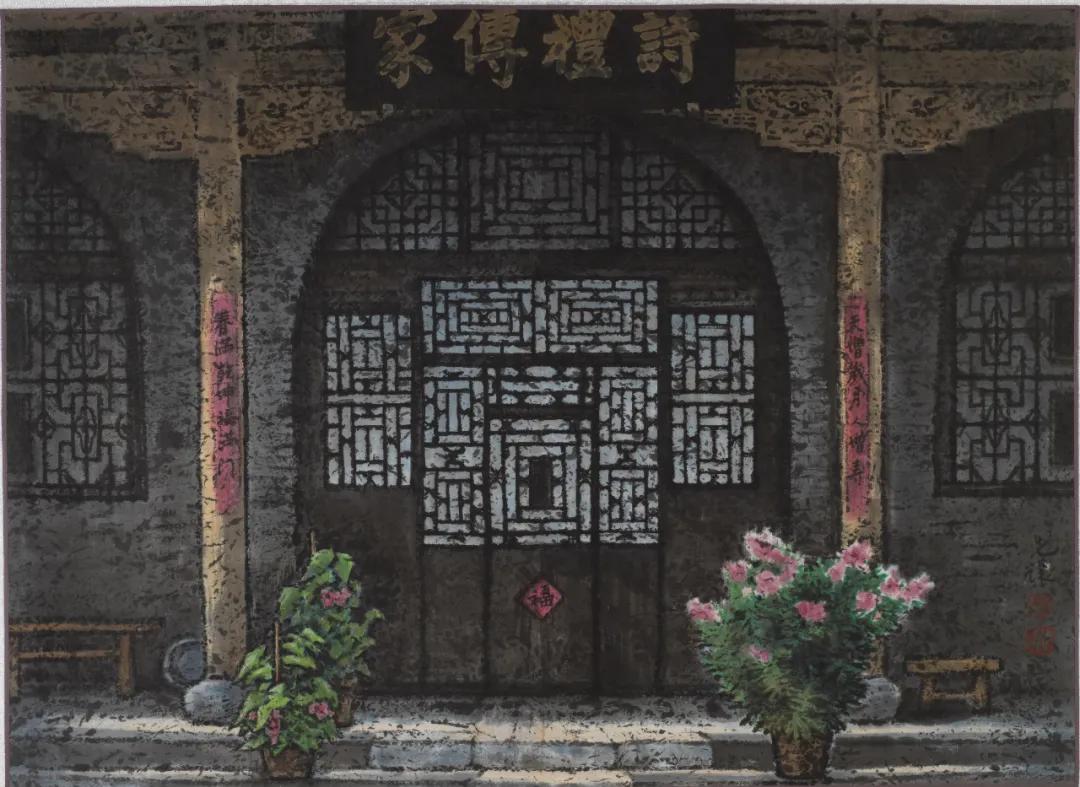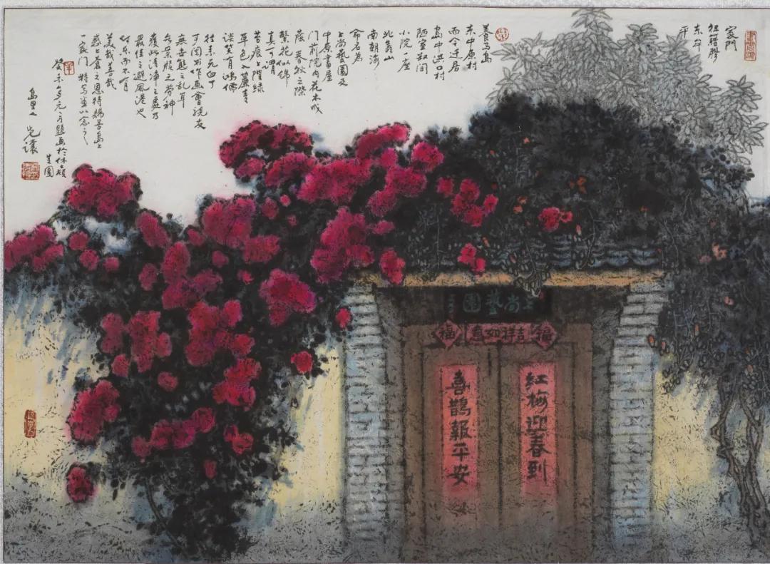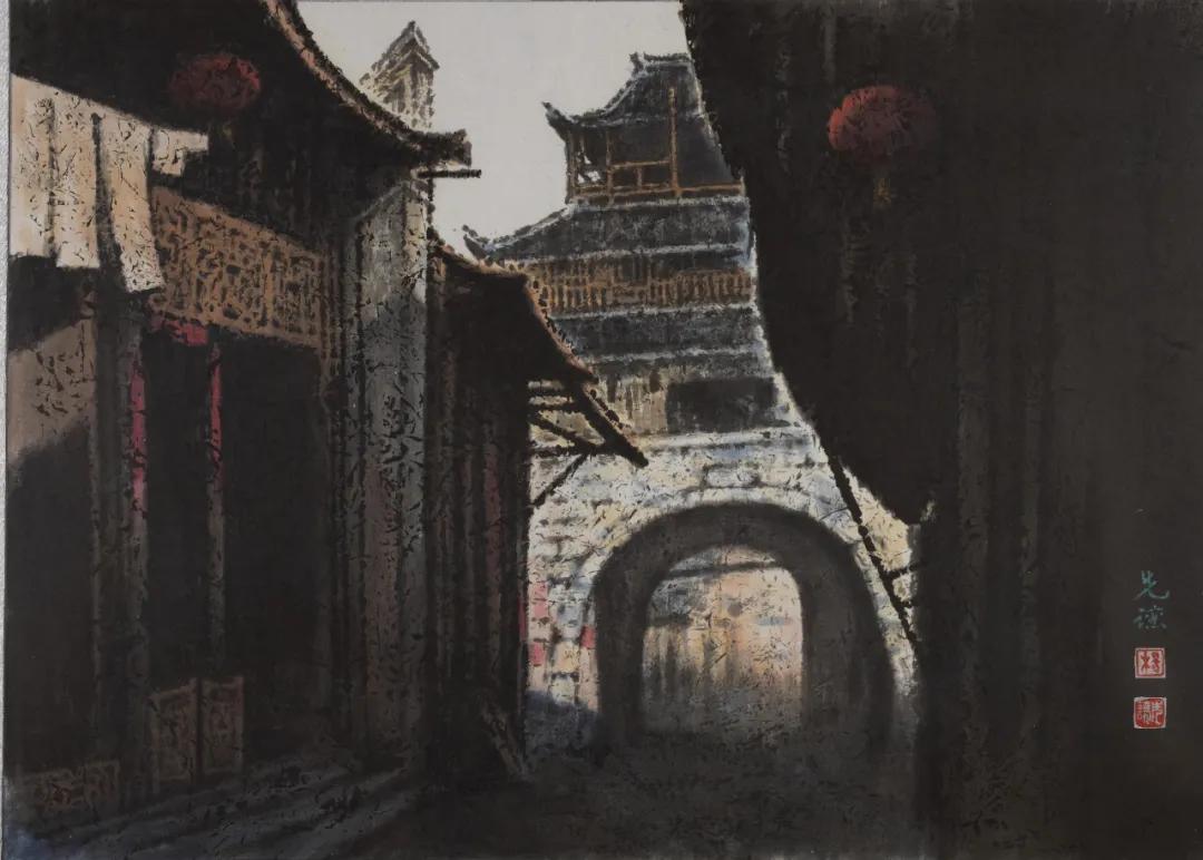彩绘是杨先让艺术创作的另一个重要领域,他在中国传统水墨画的基础上,将油画的写实技巧、套色版画的形式语言以及民间壁画的斑驳肌理融为一体,创生出独具特色的彩绘样式。他的彩绘在题材上以风景为主,那些司空见惯的钟楼古墙、城镇街道、胡同小巷、层层深院,以及民宅建筑之中木格门窗、石阶瓦顶、石榴凤仙,还有阳光明媚的北方乡镇、细雨朦胧的南方水乡,无不是画家笔下素材的来源。杨先让的彩绘作品充满了对于中华大地故土家园的热爱,尤其是他在美国寓居期间,创作大批彩绘作品以此传达对祖国真挚而深沉的情感。